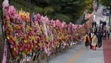 300개 넘는 윤석열 화환, 서초구청 “안치우면 강제철거”