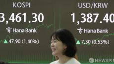 미 금리 인하에 코스피 1.30% 반등 3457.92 터치