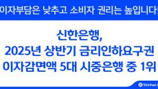 신한은행은 2025년 상반기 금리인하요구권 운영 결과 이자감면액 72억 원을 기록하며 5대 시중은행 중 1위를 달성했다고 3일- 2025.09.03 10:23