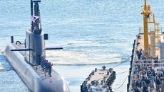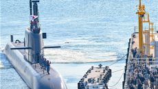 (서울=연합뉴스) 김철선 기자 = 국내 독자 기술로 설계·건조한 한국 해군의 도산안창호급 잠수함 안무함(SS-Ⅲ·3천t급)이- 2025.12.30 09:41