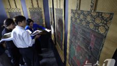 (서울=뉴스1) 김도우 기자 = 8일 서울 종로구 국립고궁박물관에서 열린 '감지금니 대방광불화엄경 주본 권22'와 '시왕도'- 2025.07.08 11:43
