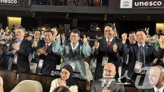 (서울=뉴스1) = 최응천 국가유산청장을 비롯한 참석자들이 12일(한국시간) 제47차 유네스코 세계유산위원회에서 선사시대 생활- 2025.07.12 18:29