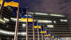 ▲ 올해 2월 24일 우크라전 3년을 맞아 EU 본부 앞에 걸린 우크라 국기 미국이 중재하는 러시아-우크라이나 종전 최신 협상- 2025.12.13 01:00