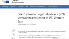 유럽연합, 2040년까지 온실가스 순배출량 1990년 대비 90% 감축 추진