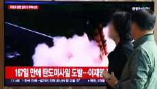 ▲ 북한이 이재명 정부 출범 이후 처음 동해상으로 미상의 탄도미사일을 발사한 22일 서울 중구 서울역에서 시민들이 관련 뉴스를- 2025.10.23 06:53