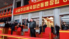 대규모 청년대회 참석한 김정은 “혁명 계승 보무 계속돼야”