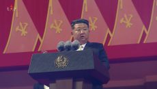 아시아투데이 목용재 기자 = 김정은 북한 국무위원장은 노동당 창건 80주년 기념 열병식에서 연설에서 국방력 강화 의지를 거듭- 2025.10.11 10:03