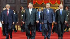 김정은 북한 국무위원장이 노동당 창건 80주년 행사 참석차 방북한 중국과 러시아의 '2인자'들과 반미 삼각연대 굳히기에 나섰다- 2025.10.10 18:04