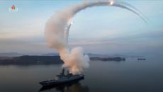 북한 구축함 '최현호' 순항미사일 발사…김정은 부녀 화상 참관