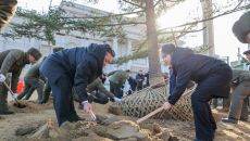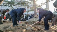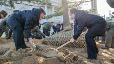 北 김정은-주애 부녀, 마주보고 삽질…'러 파병 기념관'서 식수 행사