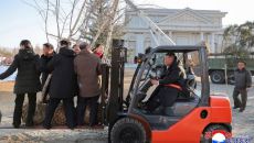 지게차 직접 몰아 나무 심은 김정은…한·중 정상회담날 ‘북러 혈맹’ 강조 맞불