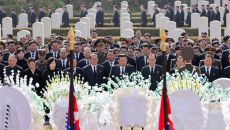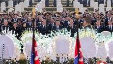 국립묘지격 신미리 애국열사릉에 안장 2018년 평창 동계올림픽 당시 북한 대표단을 이끌고 방한했던 북한 외교 원로 김영남 전- 2025.11.06 09:00
