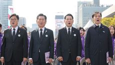 월정사 법회서 또 만난 김진태·우상호…불심 잡기 나서