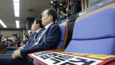국힘, 본회의장 대신 계단에…대통령 등장하자 "꺼져라"