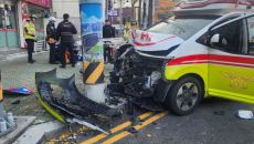 창원서 환자 태운 구급차 전봇대 충돌해 4명 부상