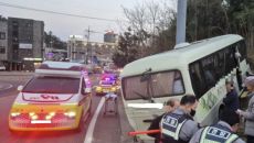 도로 이탈한 교회 버스가 표지판 들이받아...9명 부상