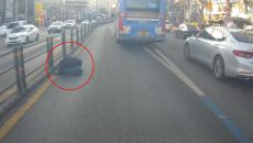 "싫어, 잘 거야" 도로 한복판서 '쿨쿨'…사고 막은 버스 기사