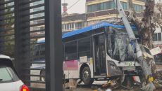 청주서 시내버스가 전신주 받아 2명 부상…졸음운전 추정