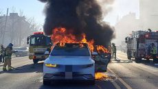 전주 도심 달리던 전기차서 화재…인명피해 없어