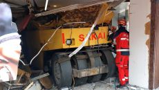 언덕 구른 중장비 무인편의점 덮쳐…70대 운전자 부상
