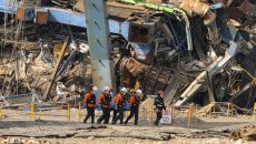 2차 붕괴 우려에 손으로 무너진 철구조물 제거