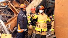 2차 붕괴 우려 속 매몰자 수색 작업…야간 작업 대비