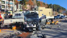 18일 오전 10시 16분쯤 경남 창원시 의창구 도계광장 앞 교차로에서 5t 화물차가 1차로에서 신호 대기 중인 투싼 스포츠유- 2025.12.18 16:36