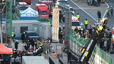 18일 오후 3시 20분께 서울 송파구 잠실대교 남단 나들목(IC) 연결체계 개선공사 현장에서 크레인이 쓰러지는 사고가 발생했- 2025.12.18 17:14