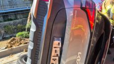 25톤 트럭에 실린 파이프와 충돌…SUV 전도 사고, 운전자 부상
