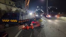 오늘(6일) 새벽 4시 반쯤, 부산시 금정구 번영로 금사램프 부근 도로에서 SUV가 정차 중인 작업 안내 1t 트럭을 들이받았- 2026.02.06 09:49