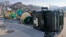 진천서 대형 파이프 실은 트레일러 전도…인명피해 없어