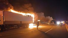 탱크로리가 대형 화물차 들이받아 화재...2명 사상