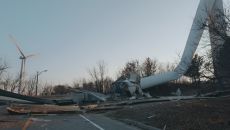 영덕군 풍력발전기 쓰러져 도로 통제···인명피해 없어