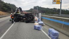 광주대구고속도로서 1t 트럭 옆으로 넘어져…1명 부상