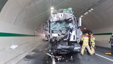 오늘(30일) 오전 9시 48분쯤 새만금고속도로 장수 방향 이서3터널에서 25톤 화물트럭이 앞서가던 탱크로리를 들이받는 사고가- 2026.03.30 16:37