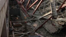 ▲ 11일 광주 서구 광주대표도서관 공사 현장에서 철골 구조물이 붕괴돼 있다. 광주대표도서관 공사장 붕괴 사고는 콘크리트 타설- 2025.12.11 15:48