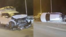 지게차 들이받고 뒤집힌 차, 달리던 차에 '쾅...2명 사상