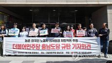 (천안=연합뉴스) 이주형 기자 = 민주노총 세종충남지역본부는 10일 오전 충남 천안시 동남구 더불어민주당 충남도당 앞에서 기자- 2024.05.10 16:05