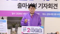 (군포=연합뉴스) 이우성 기자 = 하은호 경기 군포시장(국민의힘)은 28일 시청 브리핑룸에서 기자회견을 열고 재선 도전을 공식- 2026.04.28 10:09