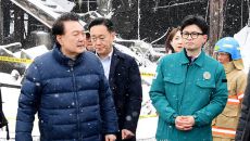 용산 사퇴요구 거부한 한동훈···충남 서천시장 화재현장서 민생행보
