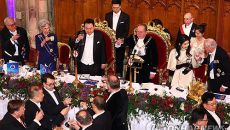 [런던=이데일리 권오석 기자] 윤석열 대통령 부부가 22일(현지시간) 오후 런던 길드홀에서 ‘런던금융특구’ 마이클 마이넬리 시장이 주최한 만찬에 참석했다- 2023.11.23 13:16
