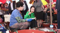 김건희 여사, 부산 기장시장 찾아 시장 활성화 독려