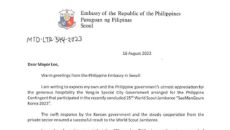 "잼버리 대원 보살핌에 감사"…필리핀 대사, 용인시장에게 편지