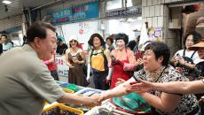 '거제 시장' 간 尹, 어르신 만나 "회 많이 드셔서 정정해 보여"