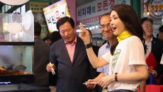 김건희 여사, 강릉 시장서 해산물 시식·상인 격려