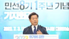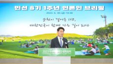 “국가 신성장산업의 본격 추진과 미래 발전 원동력을 창출하겠습니다.” 김한종 장성군수가 3일 열린 민선8기 1주년 기자 간담회- 2023.07.03 18:48