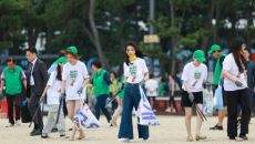 김건희 여사, 경포 해변서 쓰레기 줍기 봉사…강릉 시장도 방문
