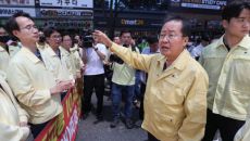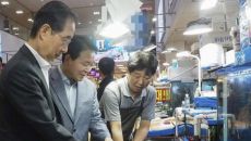 與, '후쿠시마 野 공세' 대응…수산시장·성주 참외농가 '먹방'