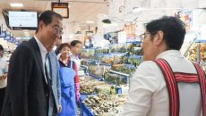 노량진 수산시장 찾은 한덕수 "후쿠시마 괴담 피해 막겠다"