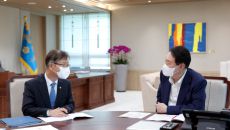 (용인=연합뉴스) 최해민 기자 = 이상일 경기 용인시장은 15일 서울 정부종합청사에서 장상윤 교육부 차관을 만나 용인 반도체·- 2022.07.15 16:17
